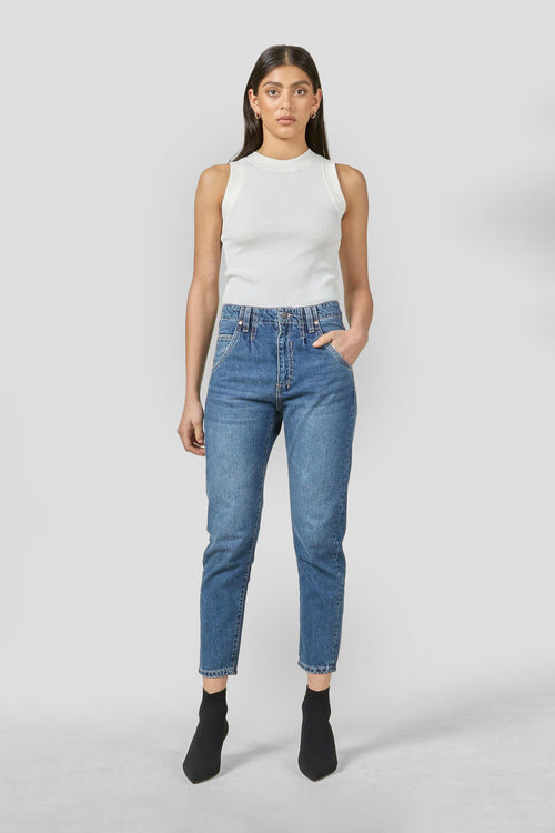 Drifter Blur Blue Leg Jeans have a comfortable, relaxed fit and a tailored denim waistband with subtle pleats. These jeans are designed with a relaxed, straight-leg silhouette.