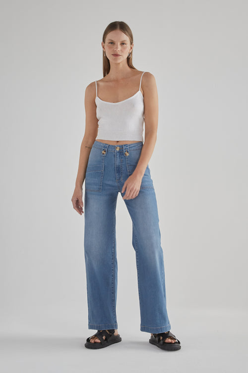 The Marcia Knit Tank is made of a linen blend fabric and features a crop top design with adjustable straps. The waist hem is neatly knit in and adorned with a broader rib knit, while the clean drop neckline adds a touch of sophistication.