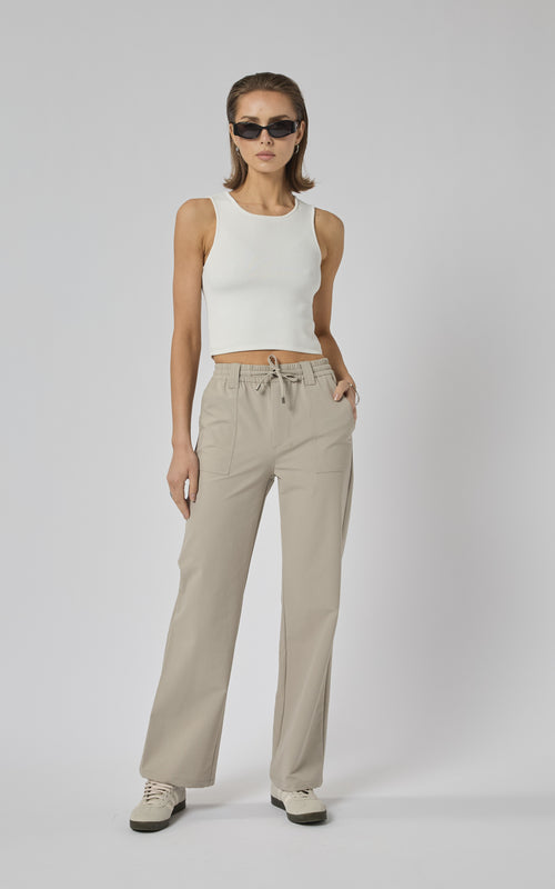 Beautifully designed Active Straight Leg Pants made out of Tech Fabric for a relaxed sporty look. Meant to be styled with Sneakers.