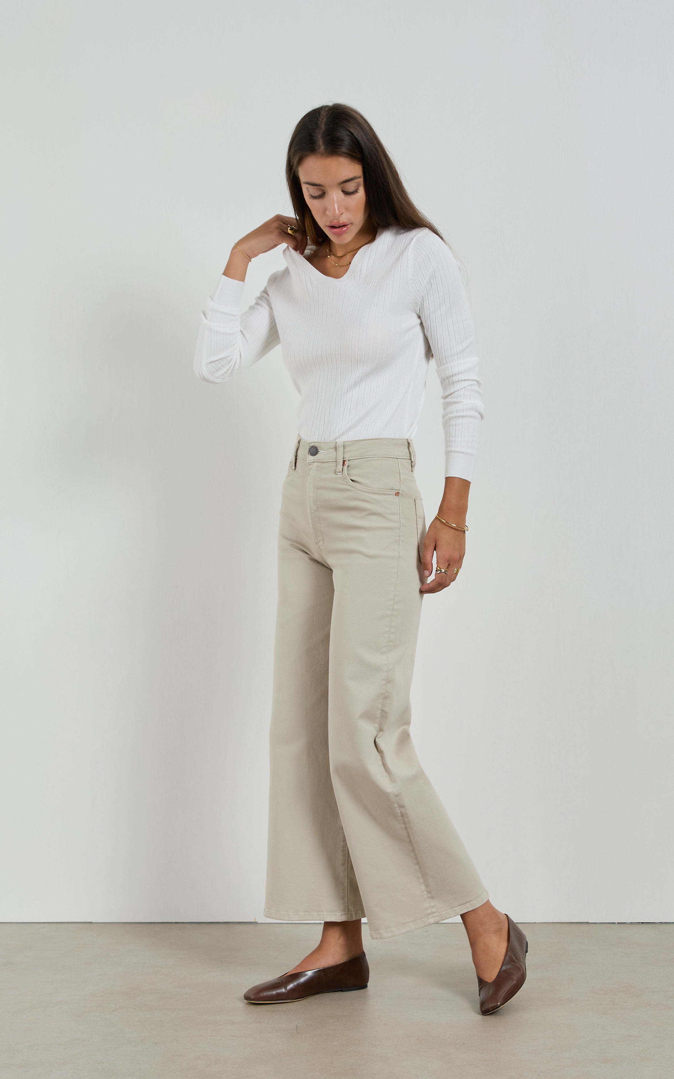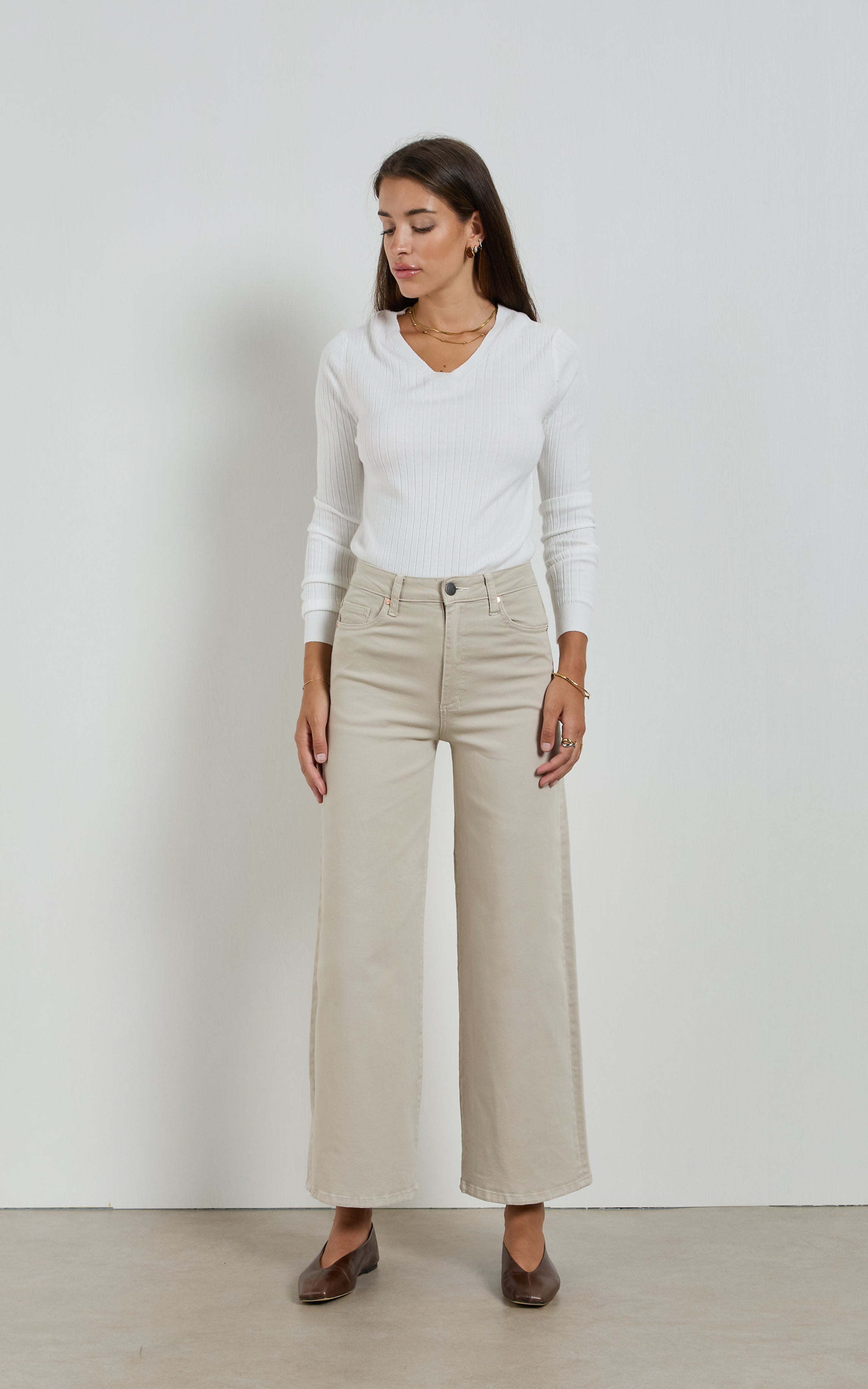 Bella Beige Wide Leg Jeans